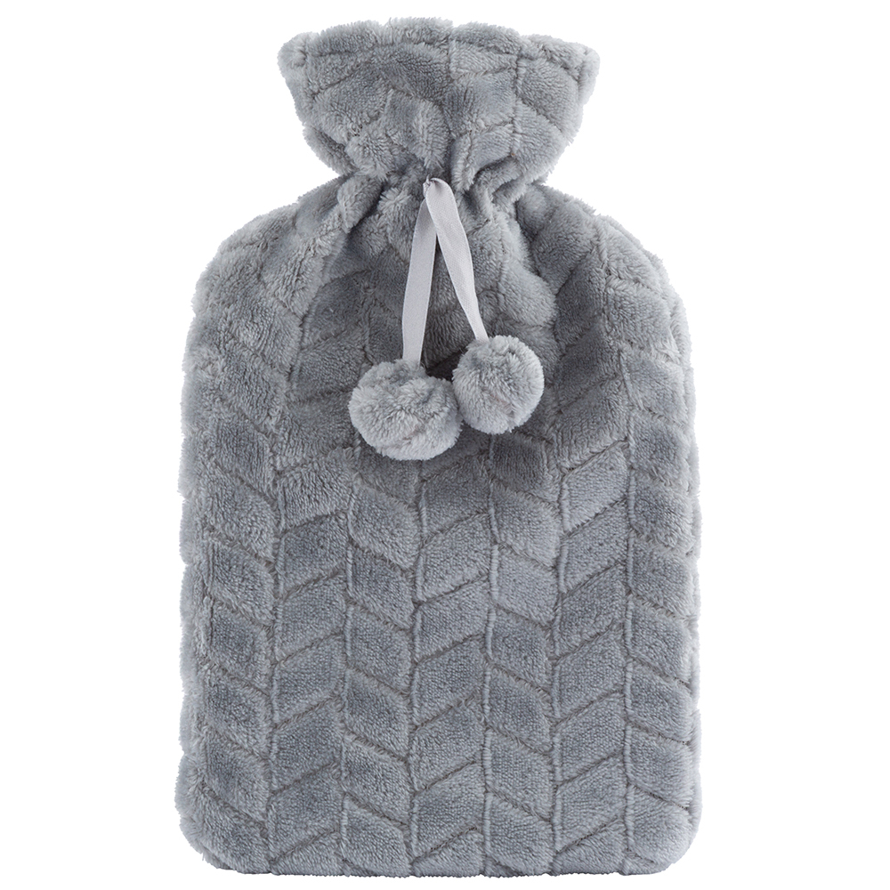 TERMOFOR W SZARYM FUTERKU Z POMPONAMI 1,5 L