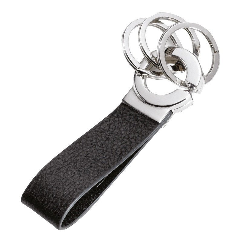 Klíčenka s praktickým „click-lock“ zapínáním, hnědou koženou smyčkou a 3 stříbrnými, kovovými kroužky. • rozměry: 101 x 31 x 8 mm • hmotnost: 46 g • kožená smyčka se 3 kroužky • vhodná i jako dárek • o kroužku cca 3 cm číst celé
