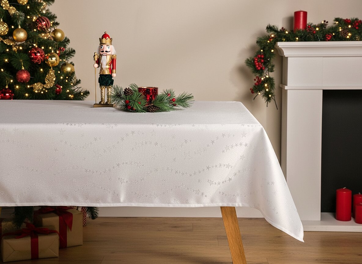 Vánoční ubrus na stůl SHINY FLAKES 145x220 cm bílá s leskem