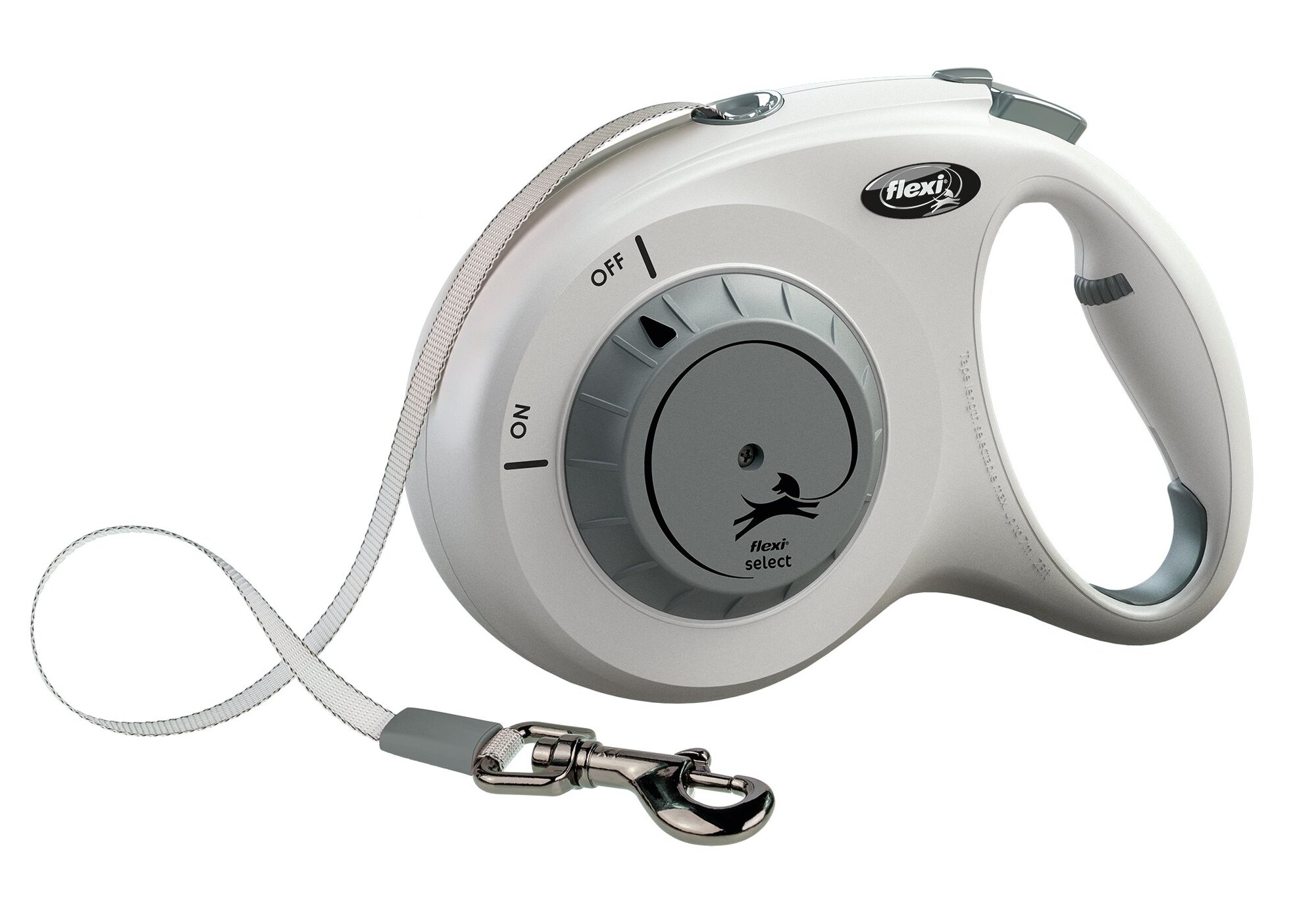 První samonavíjecí vodítko flexi®, u kterého lze maximální délku volně nastavit mezi 0 a 7 metry, díky čemuž je flexi® Select ideální pro procházky ve městě i v lese.