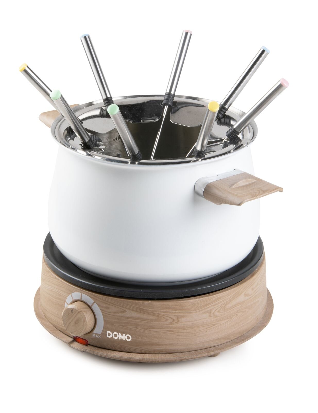 Fondue - bílý - dřevěný vzhled - DOMO DO736F, 1500 W, 8 osob, nádoba 1,4 L