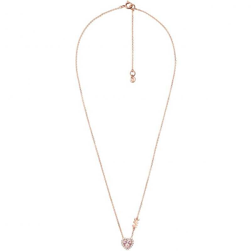 Náhrdelník od značky Michael Kors kombinuje eleganci s moderním designem. Vytvořený z kvalitního stříbra a pozlacený růžovým zlatem, vás oslní svým půvabným přívěskem ve tvaru srdce, zdobeným třpytivými zirkony. Délka 45 cm a bezpečnostní zapínání zajišťují pohodlné nošení. Tento nadčasový kousek s logem "MK" je ideálním módním doplňkem pro každou příležitost.