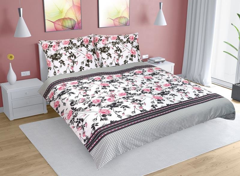 Povlečení bavlna na dvoudeku - šípková růže - 1x 240x200, 2ks 70x90 cm (240 cm šířka x 200 cm