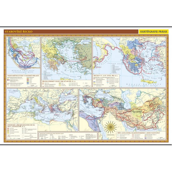 Dějepisná nástěnná mapa zachycuje historický vývoj v oblasti Egejského moře a souvisejících území v období od XXX. století před naším letopočtem až do doby Alexandra Makedonského a jeho nástupců. Při koupi získáte 20 x příruční mapu pro žáky zdarma. Nejstarší kultury v Egejské oblasti Řecko-perské války (500 až 449 př. n. l.) Řecko v V. a IV. století př. n. l. Foinické a řecké kolonie od IX. do V. století př. n. l. Říše Alexandra Makedonského a jeho nástupců