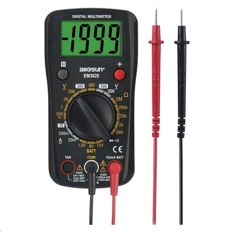 AC napětí: 200-300 V|AC proud: ne|automatické vypnutí: ne|bezkontaktní detekce AC napětí: ne|DC napětí: 200 mV - 300 V|DC proud: 20 mA - 10 A|elektrický odpor: 200 Ohm - 2 MOhm|indikace slabé baterie: ano|klešťový multimetr: ne|kontaktní detekce AC napětí: ne|měření teploty: ne|napájení: 1× 9 V (součástí balení)|podsvícení displeje: ano|prodejní obal: 1 ks, blistr|rozměr: 150 × 75 × 35 mm|součást dodávky: baterie, návod, měřicí hroty|spojitost obvodů: ano|test baterií: ano|test diod: ano|test tranzistorů: ne|volba rozsahu: manuální|záznam max. hodnoty: ne|záznam naměřené hodnoty: ano|zobrazení displeje: 3,5 digit