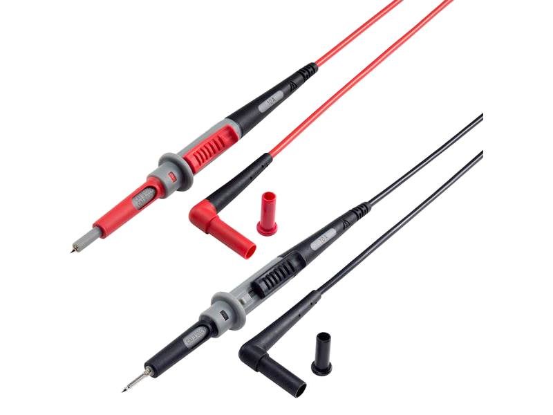 VOLTCRAFT bezpečnostní měřicí kabely [4mm bezpečnostní zástrčka - zkušební hroty] černá, červená, 1.00 m . U tohoto modelu nemohou být ochranné krytky na měřicích hrotech ztraceny, protože je zde integrován posuvný mechanismus, který přebírá funkci ochranných krytek. Pro měření kategorie Cat III 1000 v a Cat IV 600 v se ochrana jednoduše zasune dopředu a zajistí pomocí posuvného mechanismu.