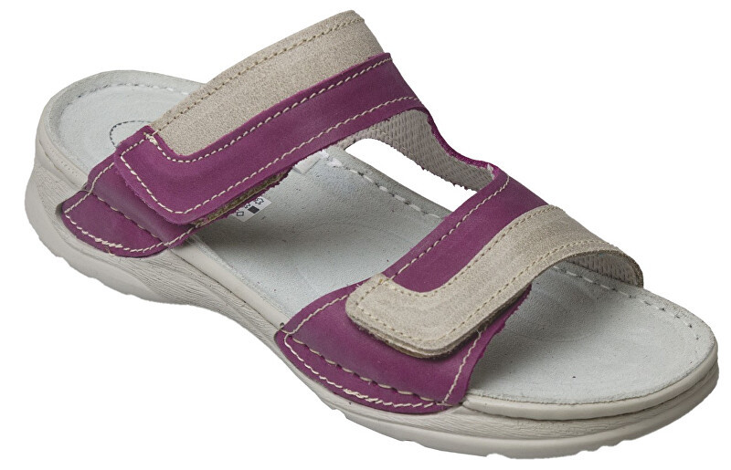 Zdravotní obuv - dámské pantofle,barva: fialová, béžovépodešev: bílá stélka: anatomicky tvarovaná, kožená,materiál: kůže,přezky pro upravení velikosti,protiskluzová podešev,certifikovaná obuv. číst celé
