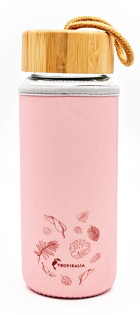 Obal na skleněnou lahev - PINK je vyroben z lehoučkého neoprenu, který je velice příjemný na dotyk a navíc má termoregulační schopnosti. Díky němu si můžete v naší skleněné láhvi konečně vychutnat tak horký nápoj, protože Vás sklo nebude pálit a navíc Vám zůstane čaj i déle teplý. Obal je ozdoben autorskou kresbou palmových listů.