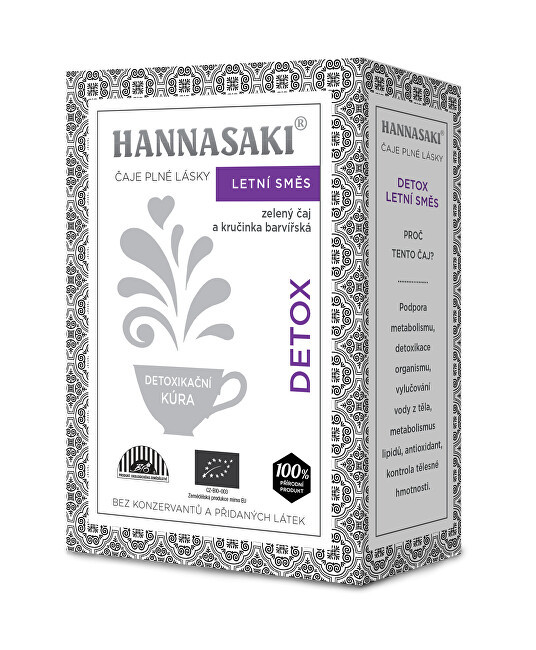 Detox letní směs je směs zeleného čaje, kručinky barvířské a přírodních aromat letního ovoce. Čaj čistí tělo, zbavuje toxinů a volných radikálů.