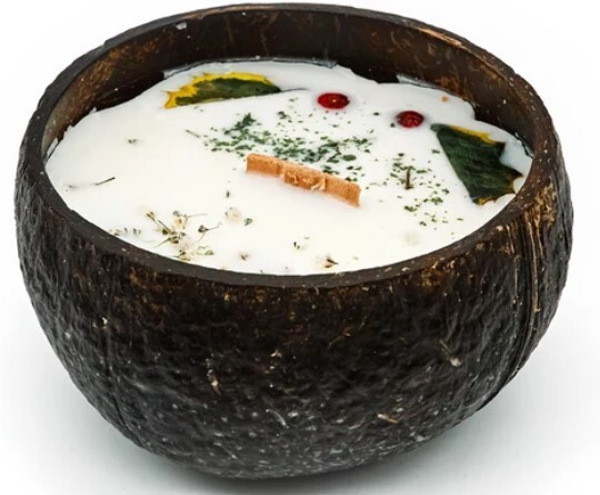 Svíčka z kokosu - vůně mandarinka - Sójové svíčky v kokosové skořápce jsou krásnou ozdobou a dekorací. Svíčky neobsahují parafín, který je vedlejším produktem ropného průmyslu.