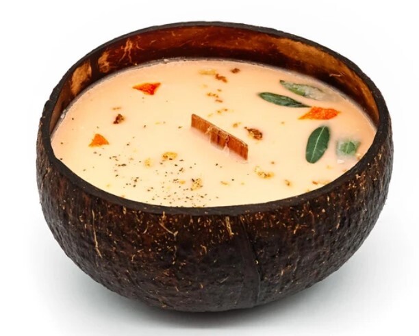 Svíčka z kokosu - vůně mandarinka - Sójové svíčky v kokosové skořápce jsou krásnou ozdobou a dekorací. Svíčky neobsahují parafín, který je vedlejším produktem ropného průmyslu.