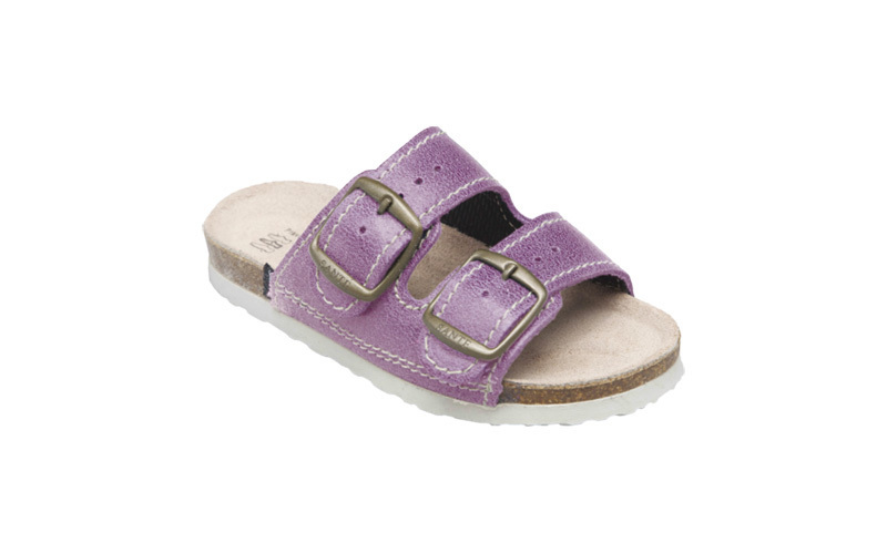 Zdravotní obuv - dětský pantofel,Barva: fialová,Podešev: světlá,Stélka: anatomicky tvarovaná,Materiál: kůže.