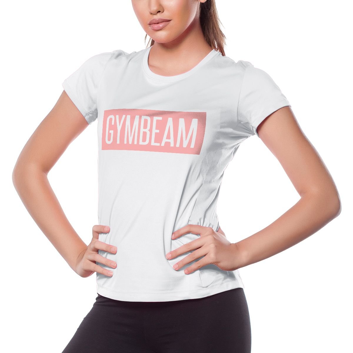 Dámske tričko Box Logo White Pink - GymBeam - Velikost L