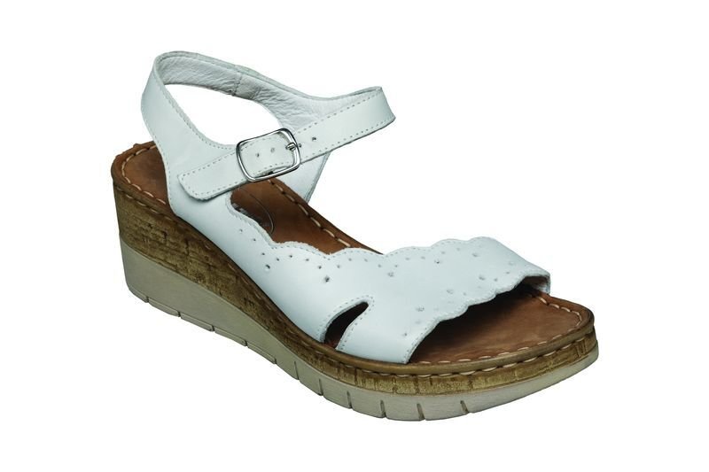 Dámská vycházková obuv.Stabilní a zároveň elegantní klínek.Svrchní materiál i stélka - useň.Zapínání na nártu - pásek na přezku.Barva - bílá.