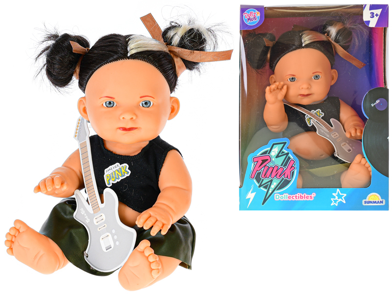 Panenka 23cm s černými culíky a kytarou v krabičce