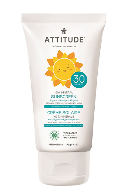 ATTITUDE Dětský 100 % minerální opalovací krém ATTITUDE SPF 30 - bez vůně 150 g