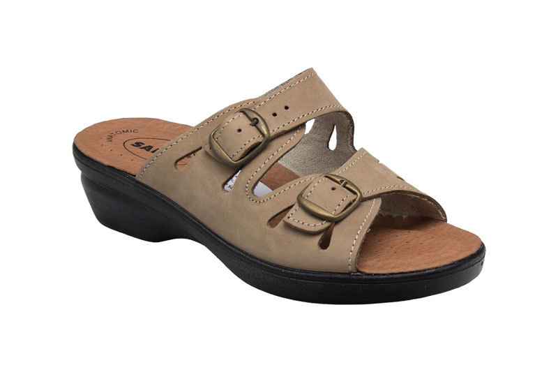 Zdravotní obuv - dámský pantofel,Barva: taupe,Podešev: tmavá,Stélka: anatomicky tvarovaná,Materiál: kůže.