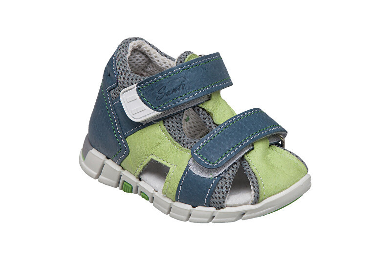 Zdravotní obuv - dětské sandále,barva: zelená, modrá,podešev: světlá,svrchní materiál: kůže v kombinaci s textilem,stélka: kůže, ortopedicky tvarovaná,zapínání na dva suché zipy,pevný opatek,plná pata, chráněná špička,obuv podporující správný vývoj nohy,dětská certifikovaná obuv. číst celé