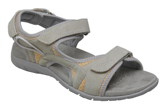 Zdravotní obuv - dámské sandále,barva: béžová,podešev: světlá,svrchní materiál: kůže,stélka: kůže v kombinaci s textilem,nastavitelné pásky,prodyšný materiál,tvarově uzší stélka - na úzkou nohu.