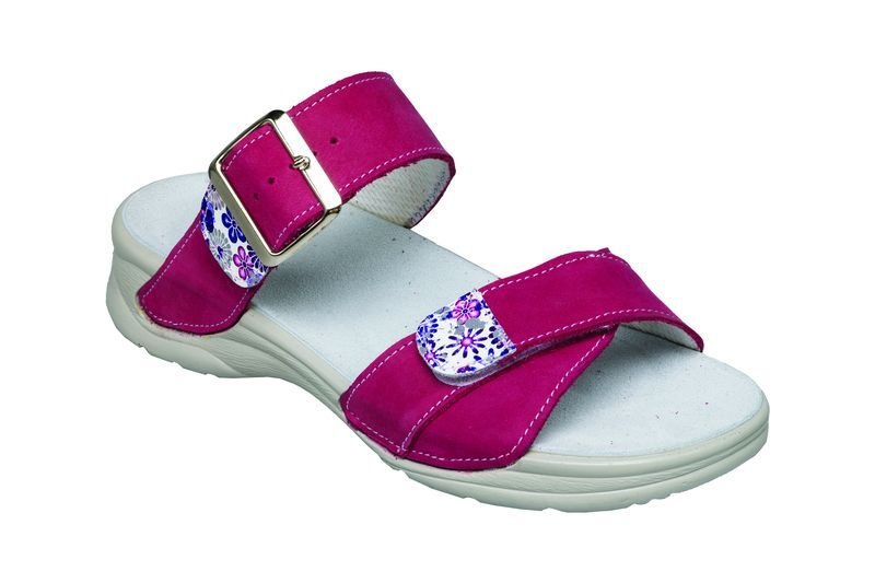 Zdravotní obuv - dámský pantofel.Svrchní materiál - useň.Nastavitelné pásky - horní na přezku a dolní na suchý zip.Stélka - anatomicky tvarovaná.Barva - růžová. číst celé