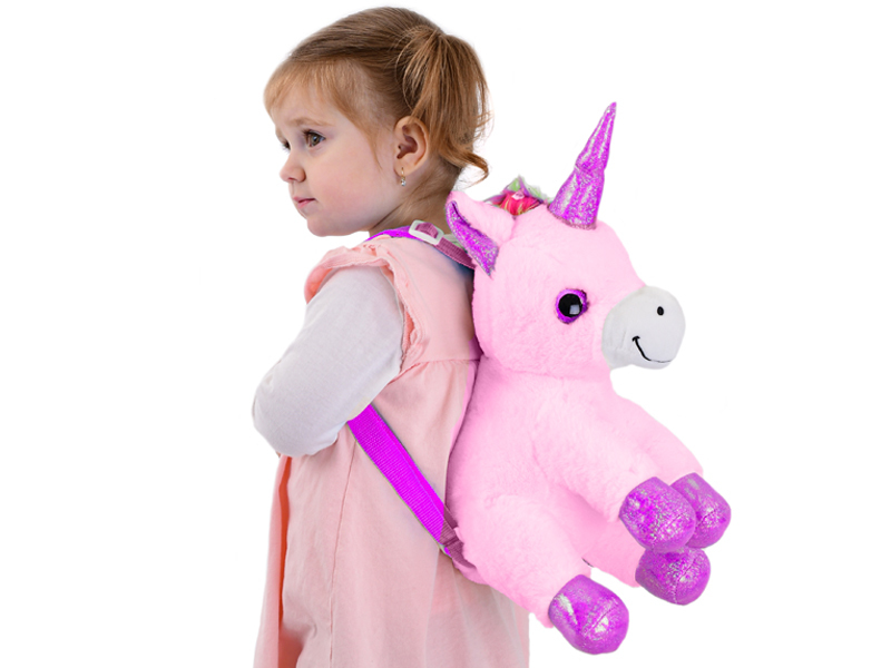 Batoh jednorožec plyšový růžový 30cm v sáčku 0m+