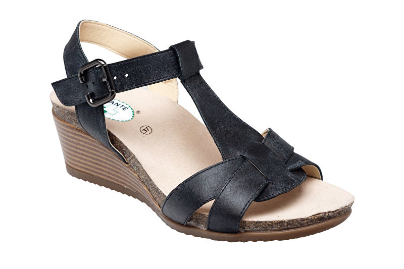 Zdravotní obuv - dámské sandále,barva: černá,podešev: hnědá,stélka: anatomicky tvarovaná, kožená,materiál: kůže,zapínání na přezku,vyšší klínek.
