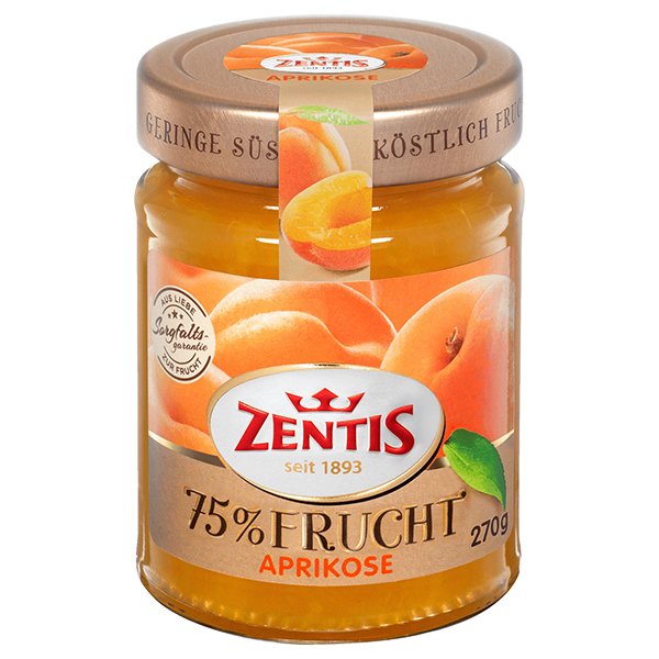 ZENTIS německá marmeláda nejvyšší kvality s podílem ovoce 75% - meruňka - 270gZentis je německá značka, která od roku 1893 vyrábí kvalitní zavařeniny a marmelády, které patří k výrobkům nejvyšší kvality a jsou vhodné pro opravdové znalce a gurmány. Zavařeniny a marmelády od značky Zentis obsahují vždy velice vysoký podíl ovoce a mají autentickou chuť. Jejich produkty jsou výrazně méně sladké nežli marmelády, které jsou běžně k dostání.Marmeládou a zavařeninou od německé značky Zentis rozhodně neprohlupíte a můžete ji použít nejen na rohlík a chleba při snídani, ale i na pokrmy jako jsou palačinky, lívance anebo pečené sladké pečivo typu koláčů a dortů.
