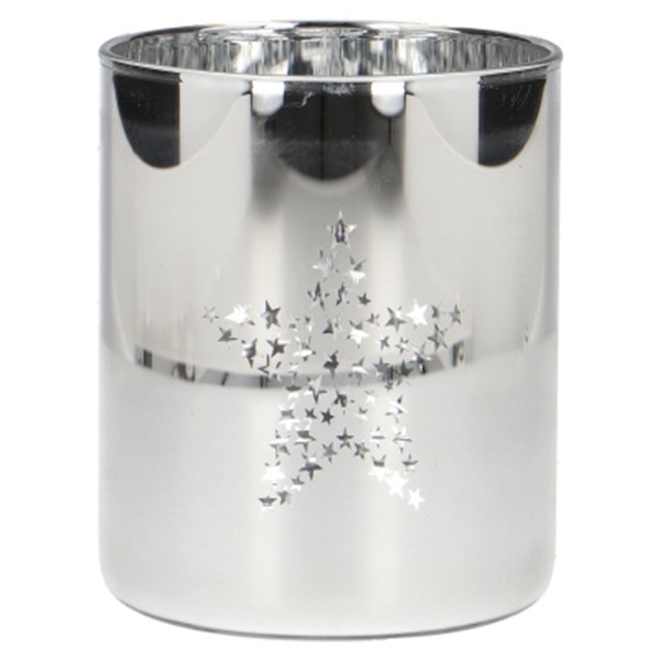 Velký dekorativní svícen s vánočním motivem hvězdy - 10x12cm krásný skleněný dekorativní svícen s motivem stříbrné hvězdy, který po zapálení svíčky dělá příjemnou vánoční atmosféru a obrazy hvězd po místnosti. Svícen je vyroben z dvojitého skla.