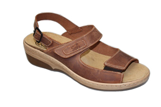 Zdravotní obuv - dámské vycházkové sandále,barva: hnědá,podrážka: béžová,svrchní materiál: kůže,stélka: kůže,klínek cca 3,5 cm,pružná vsadka pro snadnější  nazouvání,přezka pro nastavení délky pásku. číst celé