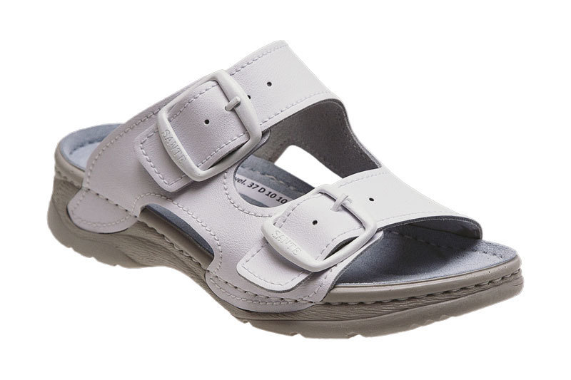 Zdravotní obuv - Profi dámský pantofel,Barva: bílá,Podešev: světlá,Stélka: anatomicky tvarovaná,Materiál: kůže,protiskluzová podrážka. číst celé