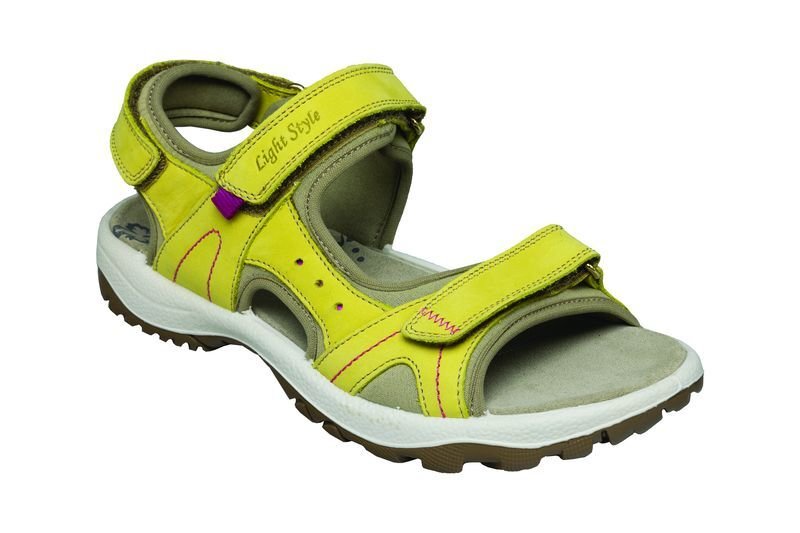 Dámský výcházkový sandál.Svrchní materiál - useň v kombinaci s textilem.Nastavitelné pásky na suchý zip přes nárt a za patou.Barva - žlutá. číst celé
