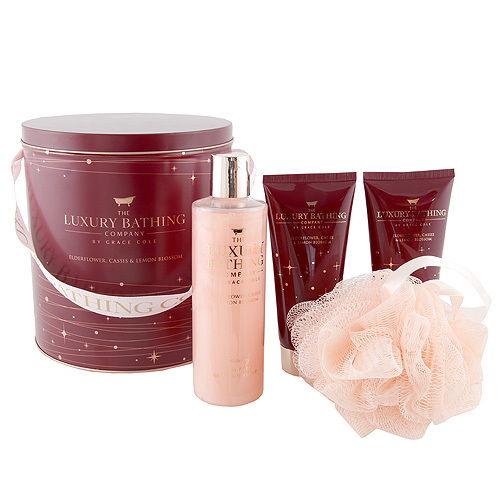 Dámská sada koupelové kosmetiky The Luxury Bathing provoní Vaši pokožku příjemnou vůní a zanechá ji hebkou, hydratovanou a svěží díky výtažkům z bezového květu, Cassis a citronového květu.Vysoce kvalitní sada The Luxury Bathing obohatí každou koupel a potěší svými účinky i originalitou designu. Ideální dárek anglické značky Grace Cole pro Vás či Vaše přátele!Kombinovaná sada v plechové dóze obsahuje: osvěžující tělový šampon 150 ml, hydratační tělový krém 150 ml, relaxační pěnu do koupele 250 ml a houbičku na mytí.