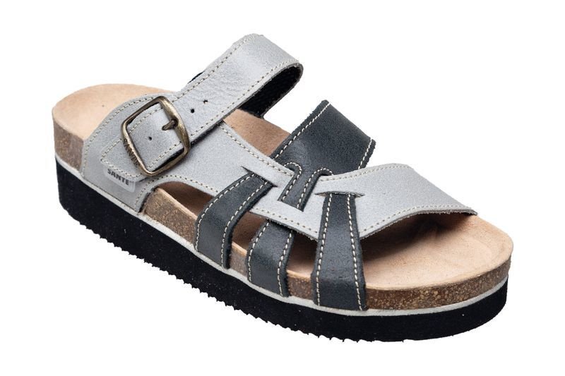 Zdravotní obuv - dámské pantofle,barva: světle šedá, tmavě šedá,podešev: černá,stélka: anatomicky tvarovaná, kožená,materiál: kůže,přezka pro upravení velikosti,protiskluzová podešev.