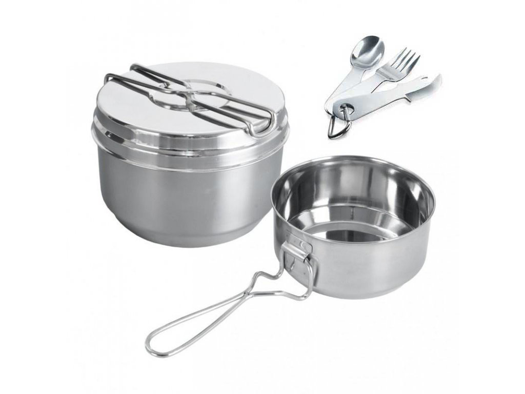 Praktická šestidílná kempingová sada tradičního ešusu z kvalitní nerezové oceli s příborem pro malé i velké výpravy.