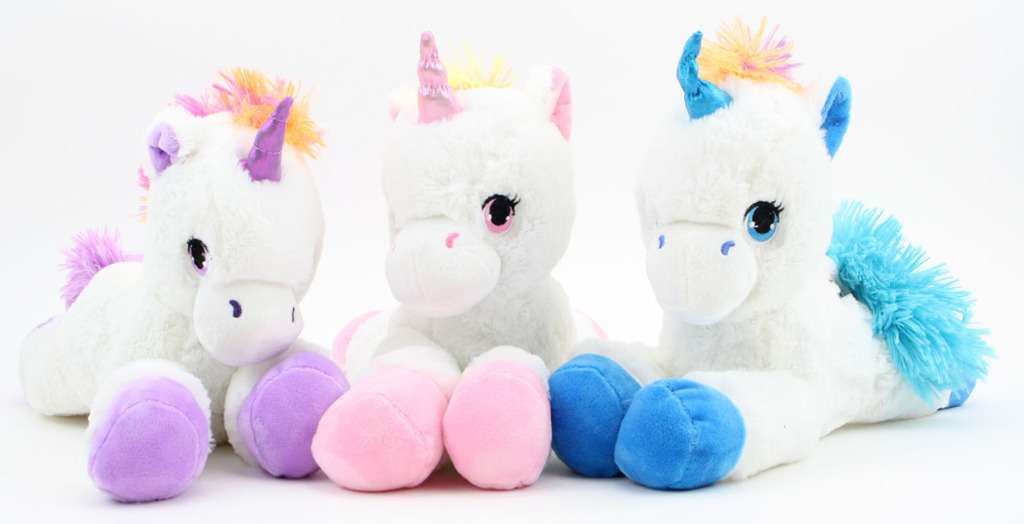 Plyšový jednorožec 35 cm ve třech barvách - modro bílý, růžovo bílý a fialovo bílý. Vyrobeno z kvalitní plyše. číst celé