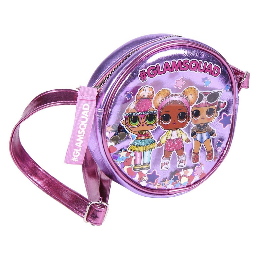 Modní kabelka lesklá L.O.L. oválného tvaru na zip s nastavitelným popruhem. Rozměr kabelky 18×18×5 cm. Materiál 100% PU.