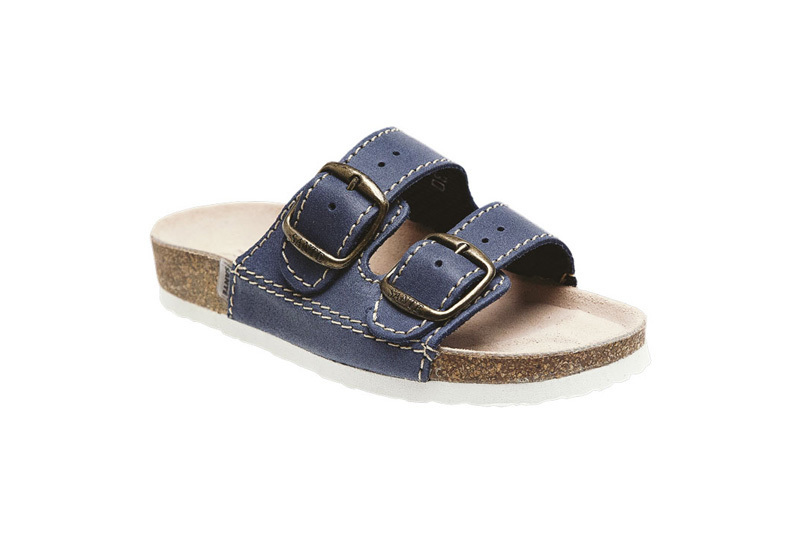 Zdravotní obuv - dětský pantofel,Barva: modrá,Podešev: světlá,Stélka: anatomicky tvarovaná,Materiál: kůže. číst celé