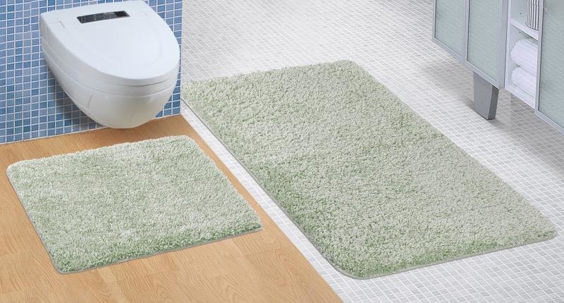Jednobarevné koupelnové předložky s vysokým a huňatým vlasem. Výška vlasu 2,5 cm. Z rubové strany předložky je protiskluzový latexový nátěr. V prodeji pouze po celých sadách. Praní na 30 °C bez použití aviváže.