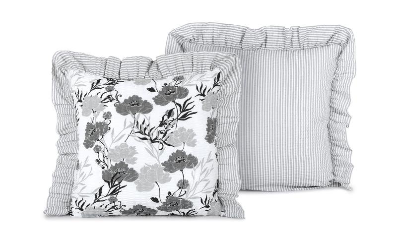 Povláček s volánem na zip - šedý květ s šedým proužkem - 40x40 cm