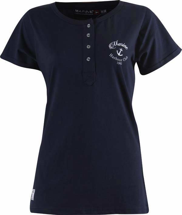 Klasické triko s krátkým zahrnutým rukávem s knoflíčky pod kulatým výstřihem a logem na hrudi. číst celé