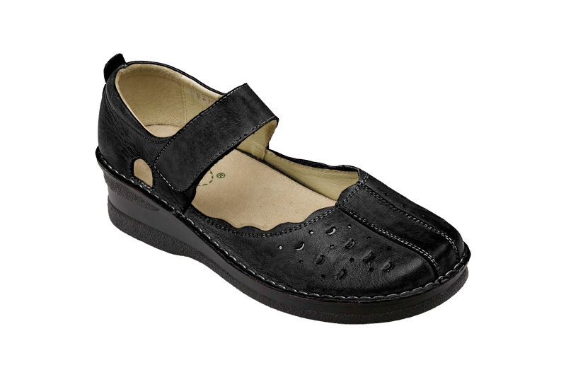 Zdravotní obuv - dámská vycházková obuv,Barva: černá,Podešev: černá,Stélka: anatomicky tvarovaná,Materiál: kůže,prodyšný materiál.
