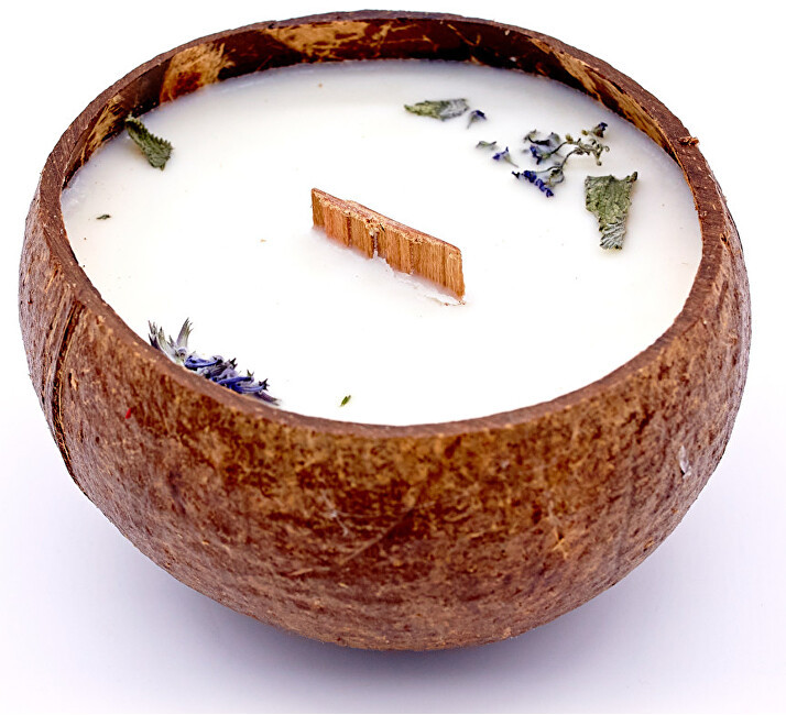 Svíčka v kokosu - vůně Melissa (Meduňka) - Sójové svíčky v kokosové skořápce jsou krásnou ozdobou a dekorací. Svíčky neobsahují parafín, který je vedlejším produktem ropného průmyslu.