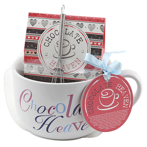 Dárková sada, Čokoláda 19 g, bílý keramický hrnek s nápisem 500 ml, metlička
