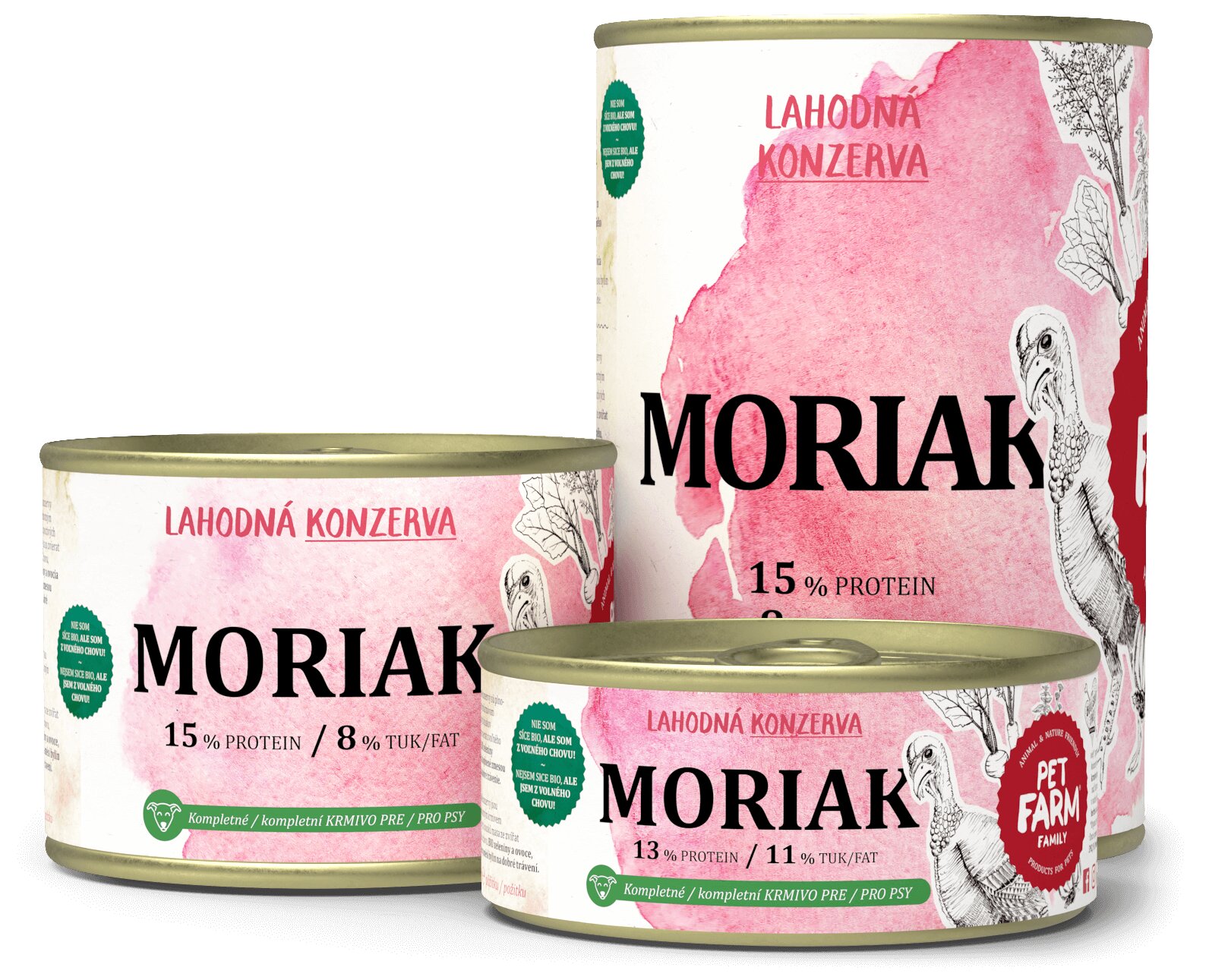 "PFF Moriak - konzerva 100 g . Šťavnaté konzervy jsou ideálním hlavním jídlem nebo výživnou svačinkou. Základ našeho MORIAKA tvoří maso z FREE RANGE krocana z volného výběhu (67%). Dalšími důležitými složkami jsou mrkev, červená řepa a dýně hokkaido, která je bohatá na minerální látky a vlákninu. Nechybí také quinoa, která je přirozene bezlepková a výživná. Konzerva je doplněna o chia semínka, spirulínu, kurkumu a směs bylinek na dobré trávení.