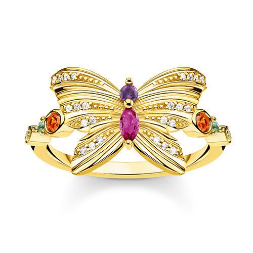 Prsten \"Motýl\" Thomas Sabo, TR2285-488-7-52, Sterling Silver, 925 Sterling silver, 18k yellow gold plating, synthetic corundum, glass-ceramic stone, zirconia