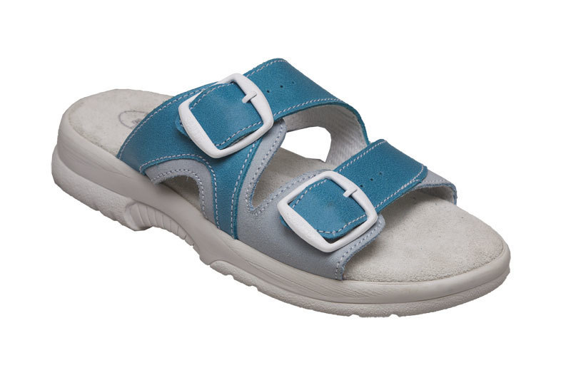 Zdravotní obuv - dámský pantofel,Barva: tyrkysová,Podešev: bílá,Stélka: anatomicky tvarovaná,Materiál: kůže. číst celé