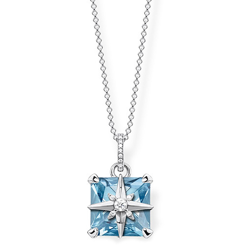 Náhrdelník \"Modrý kámen s hvězdou\" Thomas Sabo, KE1953-644-31-L45v, Sterling Silver, 925 Sterling silver, blackened, synthetic spinel blue, zirconia white