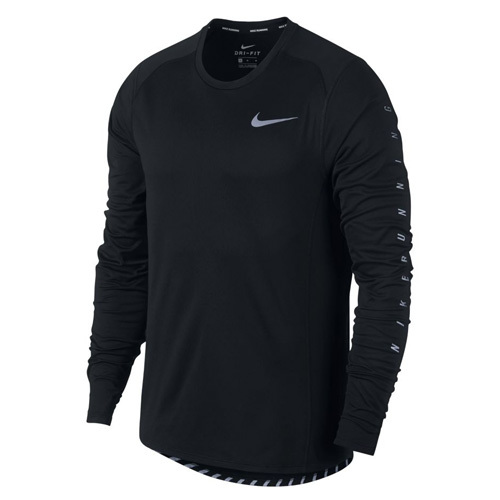 Disponuje klasickým výstřihem, technologií Dri-FIT a reflexními prvky. Prodloužený zadní díl chrání před prochladnutím. Maximální pohodlí je dosaženo díky plochým švům, které brání podráždění pokožky. Na levém prsu se nachází logo Nike Swoosh, levý rukáv zdobí potištěný nápis Nike Running. Materiál: 100% polyester Lze prát v pračce Dri-FIT Technologie vysoce výkonných materiálů, které rychle odvádí vlhkost od těla na povrch látky. Sportovec je tak v suchu a pohodlí. Reflexní prvky Jedná se o reflexní materiál, který odráží světlo a tím zvyšuje tvou bezpečnost za šera a tmy. Ploché švy Snižují tření a tím zabraňují podráždění pokožky.
