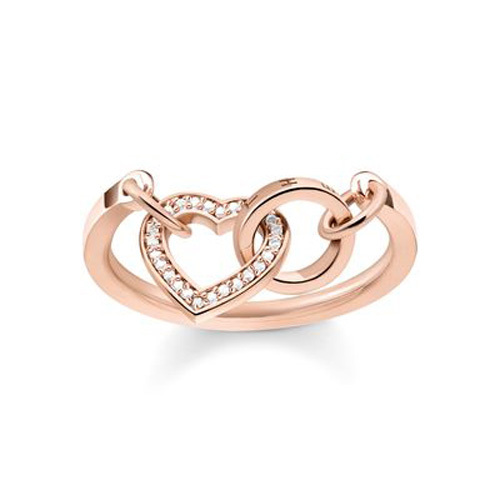 Prsten \"Spolu srdce\" Thomas Sabo, TR2142-416-14-54, Sterling Silver, 925 Sterling silver, 18k rose gold plating, zirconia white
