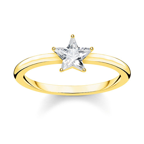 Prsten \"Hvězda\" Thomas Sabo, TR2270-414-14-52, Sterling Silver, 925 Sterling silver, 18k yellow gold plating, zirconia white